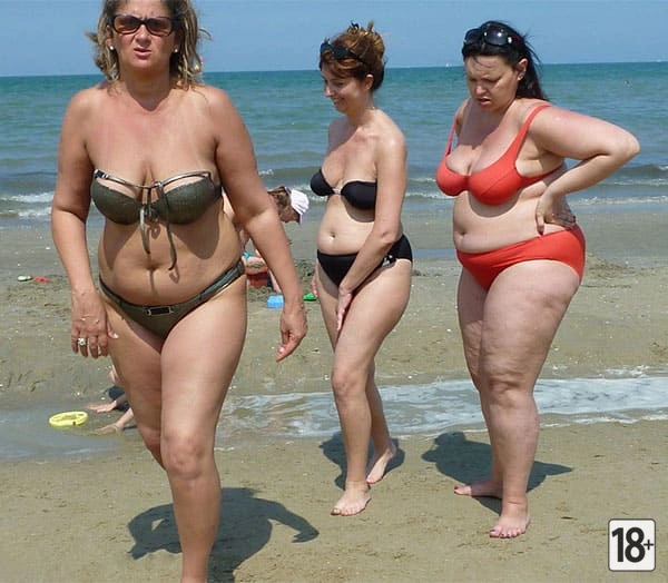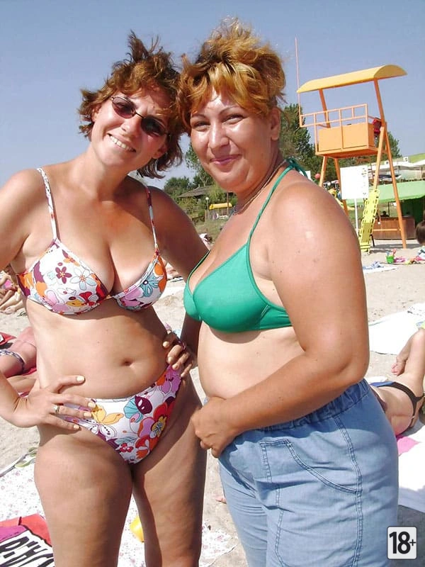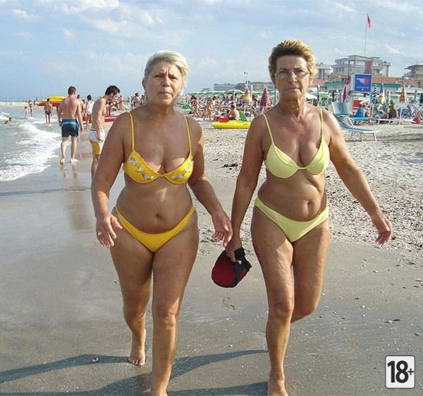 Горячие зрелые женщины в бикини на пляж