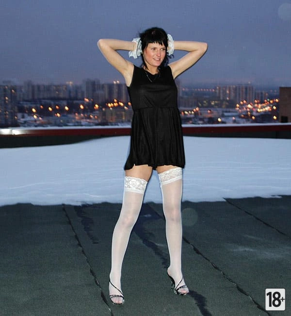 Русская милфа в чулках — зимняя страсть на крыше