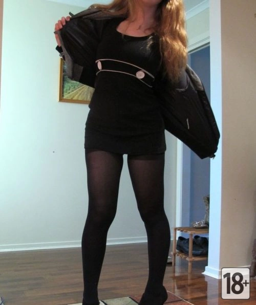 Фото: Девушка с большой грудью хвастается своими черными колготками, которые достаточно прозрачные, чтобы было видно ее белье. Но ей этого мало, чтобы выглядеть максимально сексуально, поэтому она их снимает. После этого она полностью обнажится и бесстыдно продемонстрирует все свои соблазнительные части тела!