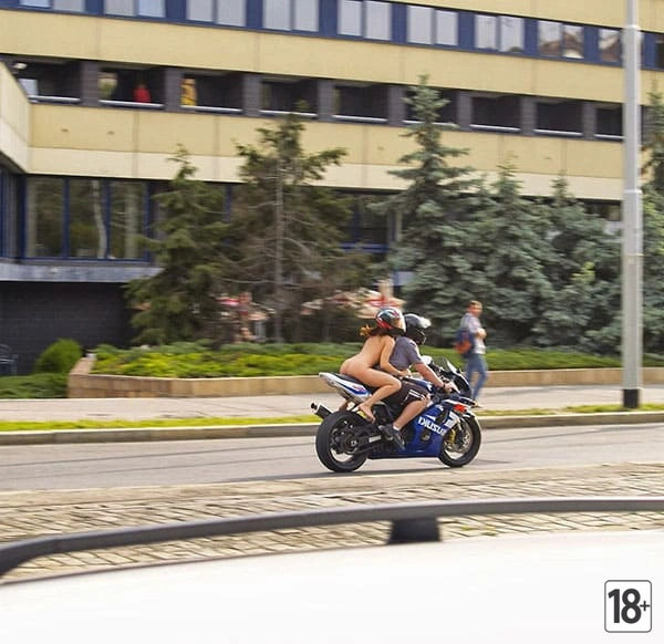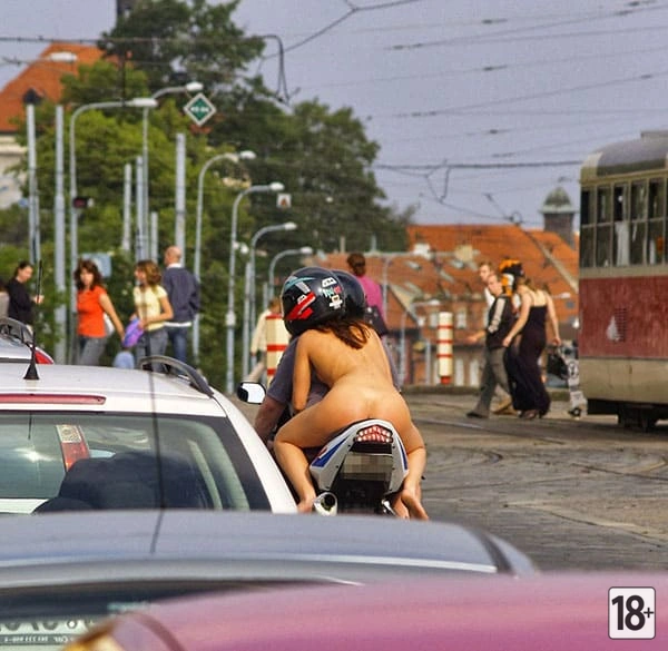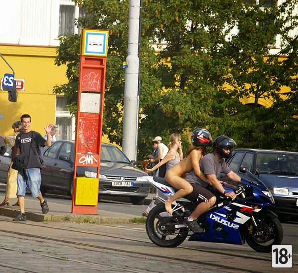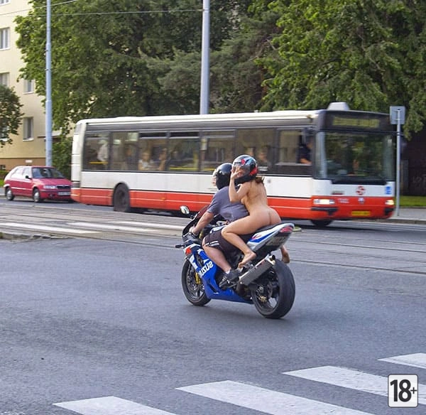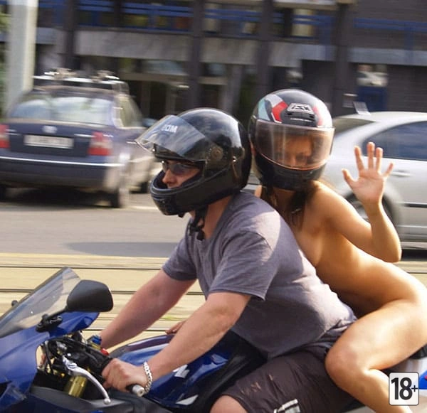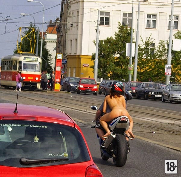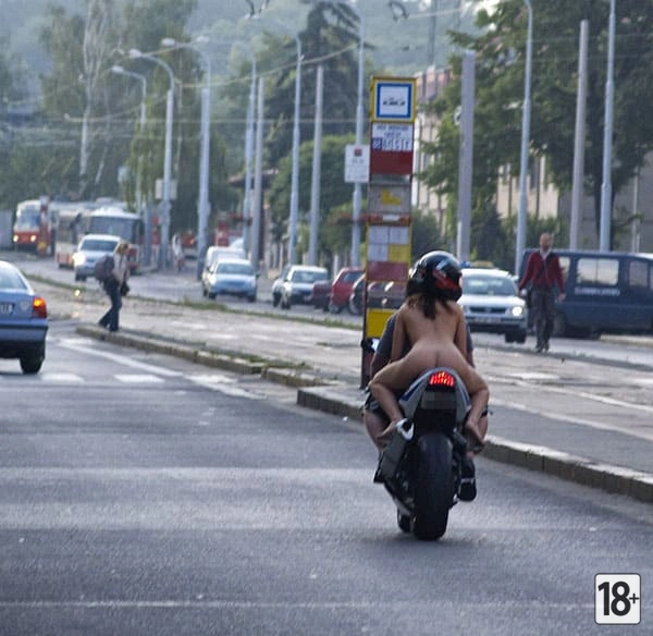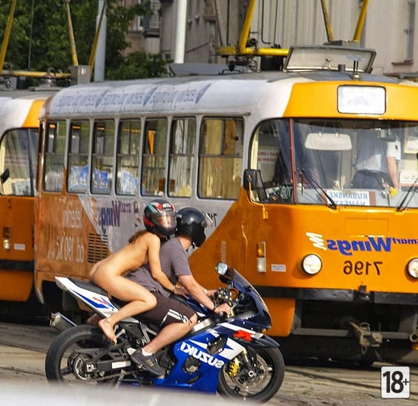 Голая девушка на мотоцикле — жаркие фото в центре города